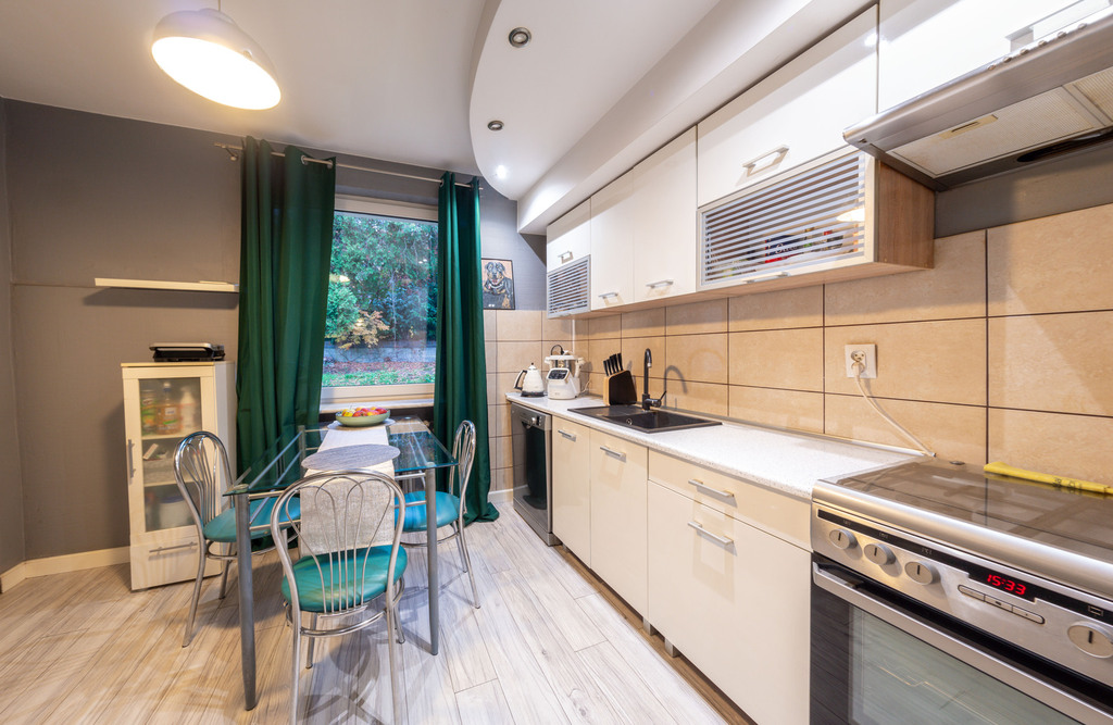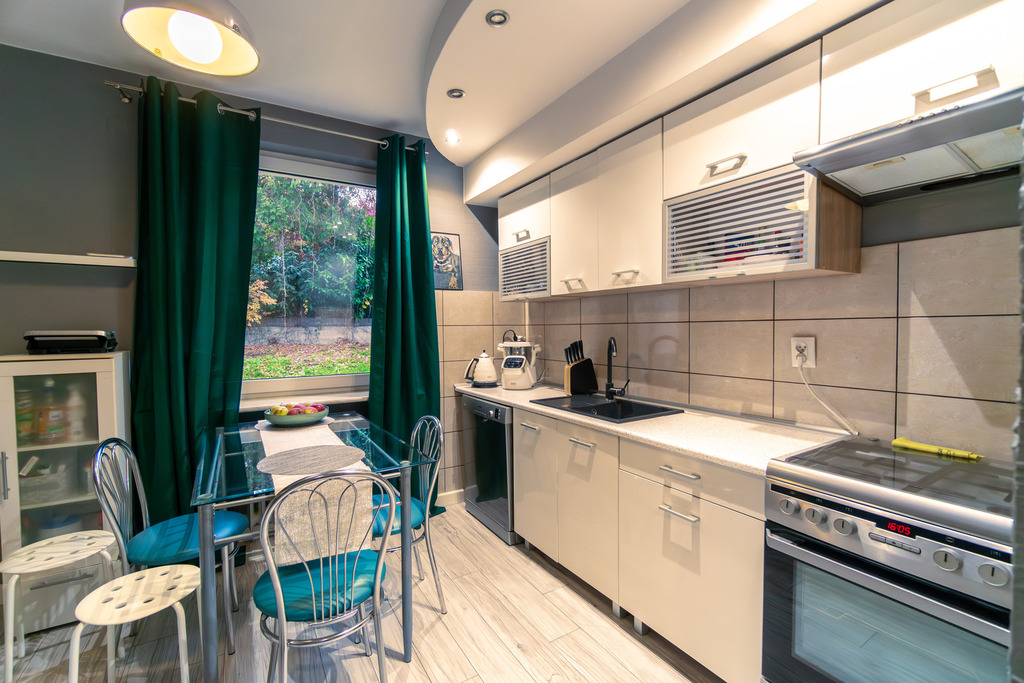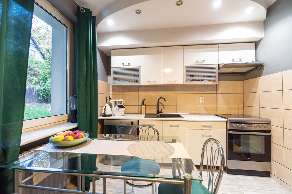 oddzielna kuchnia z wejściem do piwnicy oraz do ogrodu – 9,6m2