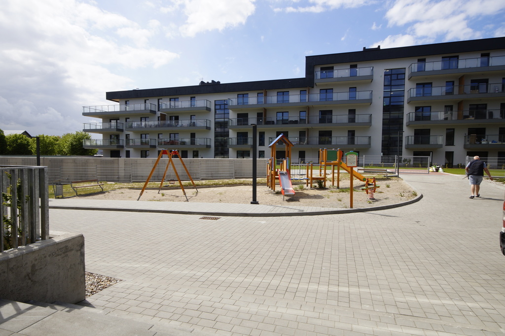 Apartament usytuowany jest w nowoczesnym, komfortowym apartamentowcu z 2019r z windą zjeżdżającą do poziomu garażu w pierwszej linii zabudowy od morza). Kompleks budynków jest dostępny jedynie dla mieszkańców, ogrodzony i stale monitorowany. Do dyspozycji mieszkańców jest plac zabaw dla dzieci, tereny zielone.