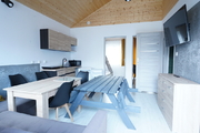 20 domków, 20 możliwości. Każdy segment usługowy z funkcją hotelarską stanowi niezależny apartament, który może być wynajmowany w całości, bez podziału na poszczególne pokoje.