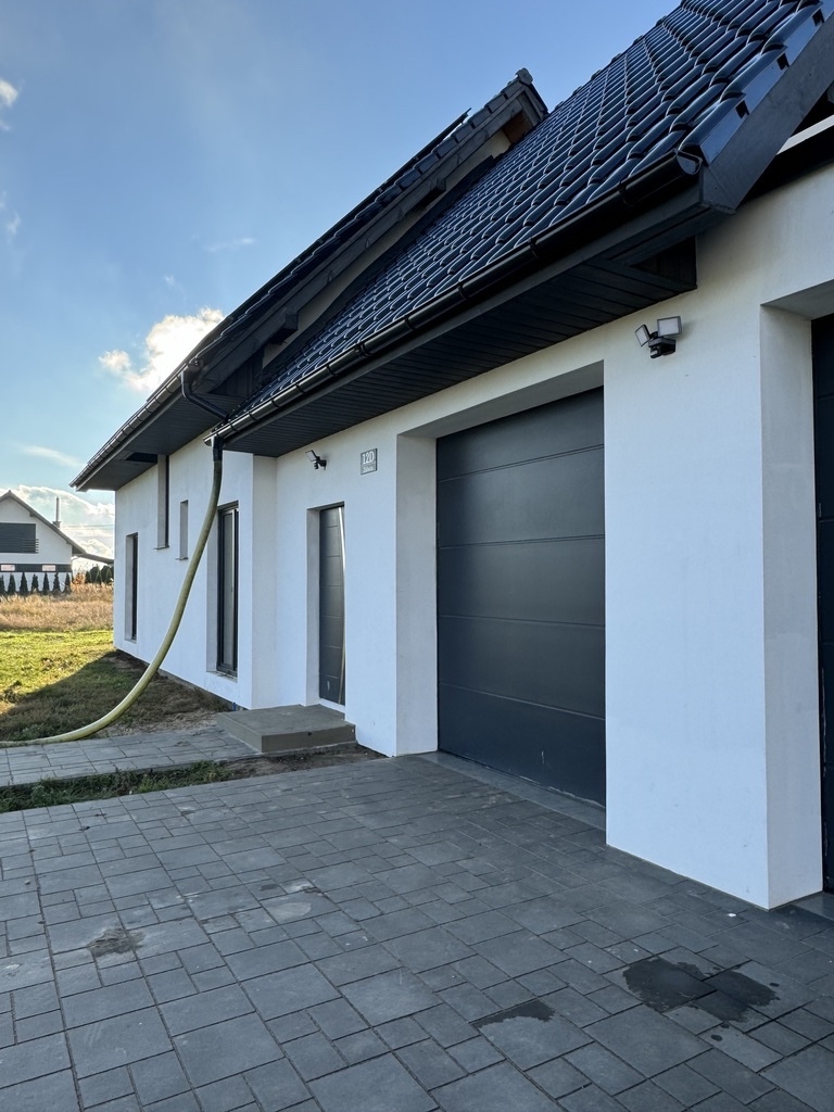Nowy dom posadowiony jest na działce o powierzchni 1169 m2. Działka o kształcie regularnym – prostokątnym, nasłonecznienie dobre, warunki przyrodniczo-klimatyczne korzystne.