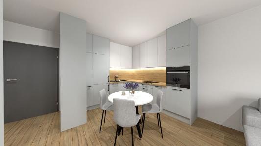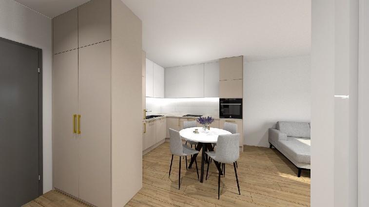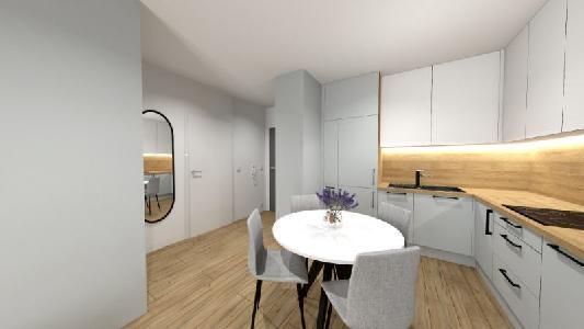 – salon połączony z aneksem kuchennym oraz z wyjściem na balkon