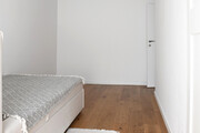 Kolorystyka pomieszczeń i wystrój wnętrz pozostają w neutralnej i minimalistycznej estetyce, co podkreśla przestrzeń i ponadczasową elegancję wnętrz.