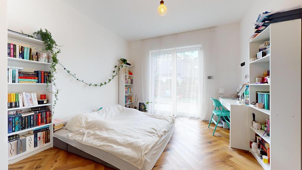 – sypialnia wraz z garderobą i prywatną łazienką z wanną, prysznicem i wc