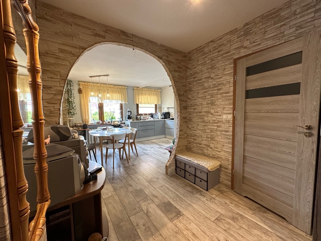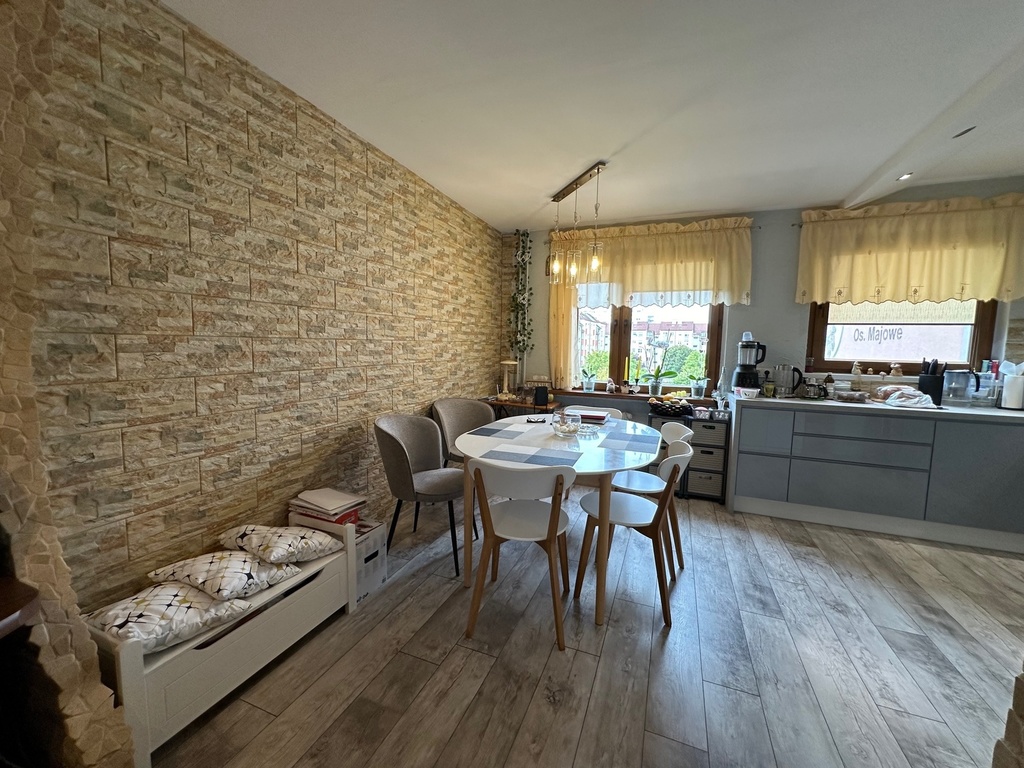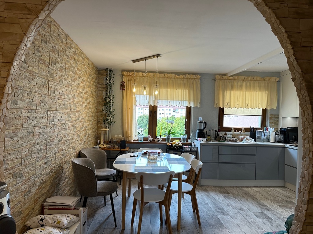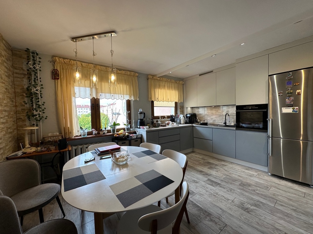 Mieszkanie przeszło remont zakończony w ubiegłym roku, w wyniku którego jeden z pokoi został połączony z kuchnią i tym samym uzyskano dużą, ładną, widną kuchnię połączoną z jadalnią. W kuchni nowa funkcjonalna zabudowa z pełnym wyposażeniem w sprzęty AGD.