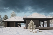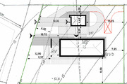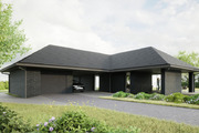 Na terenie działki został zaprojektowany garaż jednostanowiskowy oraz zadaszone miejsce postojowe bezpośrednio przy wejściu do domu. Dojazd przewidziano wokół garażu, aby nie było potrzeby cofania auta (oczywiście to jest tylko propozycja).