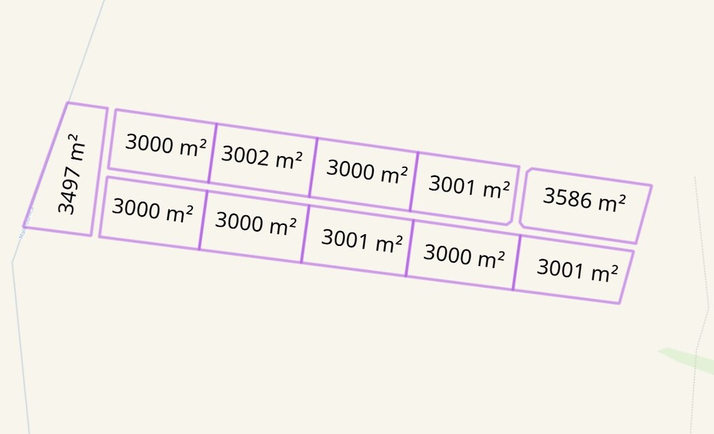 Działki o powierzchniach 3000m2 – 3586m2.