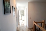 Na pierwszym piętrze trzy osobne sypialnie, garderoba, łazienka z prysznicem i wanną. Pokoje nie są umeblowane.