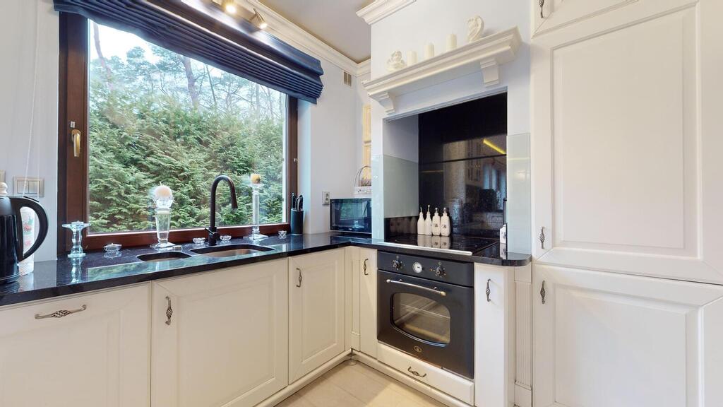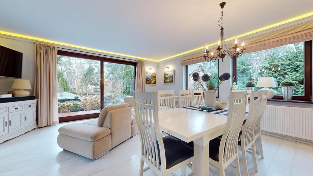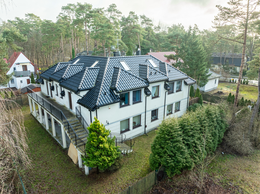 Całość ogrodzona, wybudowana z wysokiej jakości materiałów, w dobrym stanie technicznym, położona na zagospodarowanej działce o wielkości 938 m2. Ogród od strony południowej z domkiem letniskowym dla dzieci, grillem murowanym oraz miejscem do biesiadowania. Teren zadbany z dużą ilości nasadzeń. Wszystko urządzone z klasą i z dbałością o każdy szczegół.