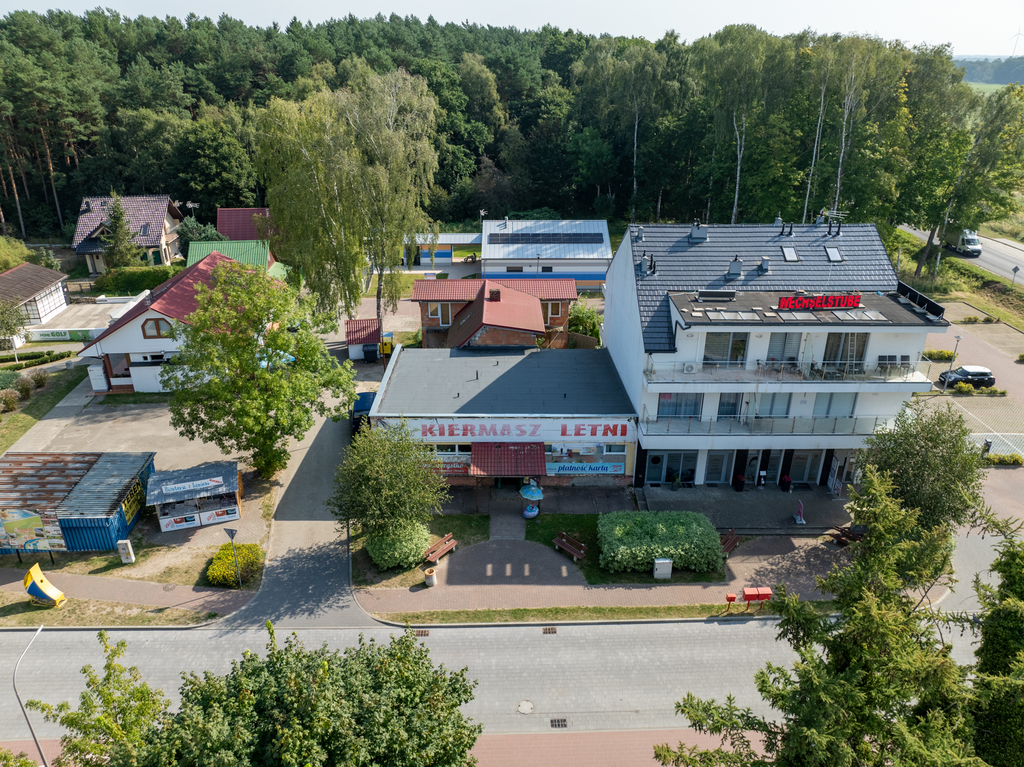 Wokół zagospodarowany teren oraz pełna infrastruktura (parking, restauracje, kawiarnie, domki letniskowe ).