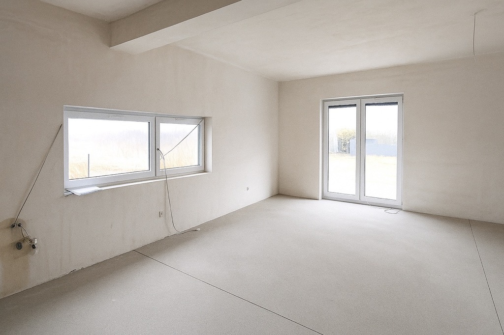 Dom w stanie deweloperskim wyposażony w piec gazowy, elewacja docieplona 18 cm styropianem grafitowym, co zapewnia optymalne izolowanie termiczne.