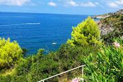 Na piętrze dwie sypialnie, łazienka i duży balkon z widokiem na morze.