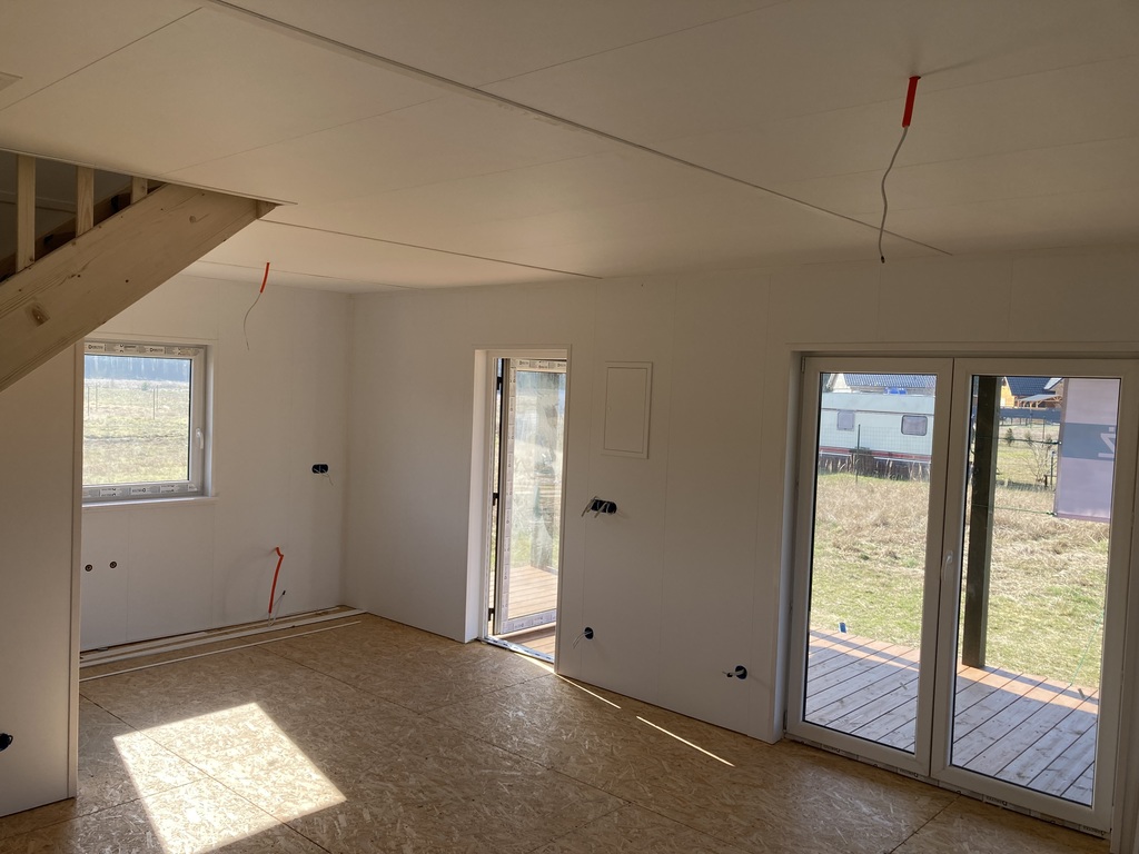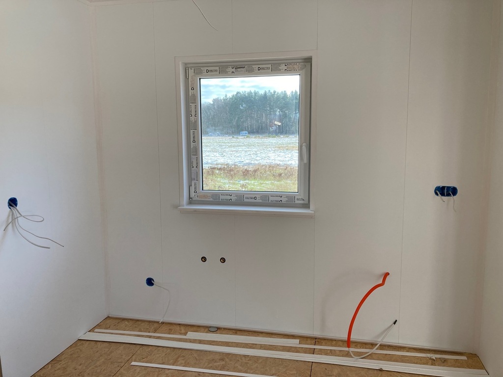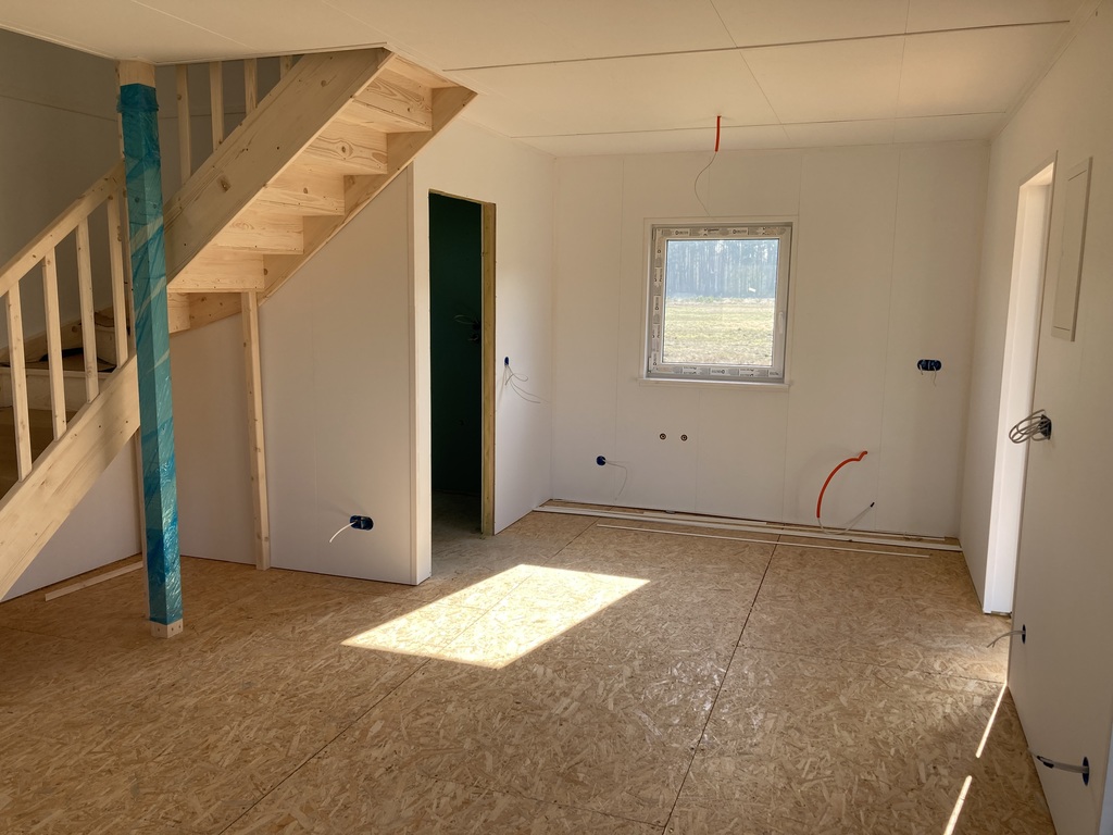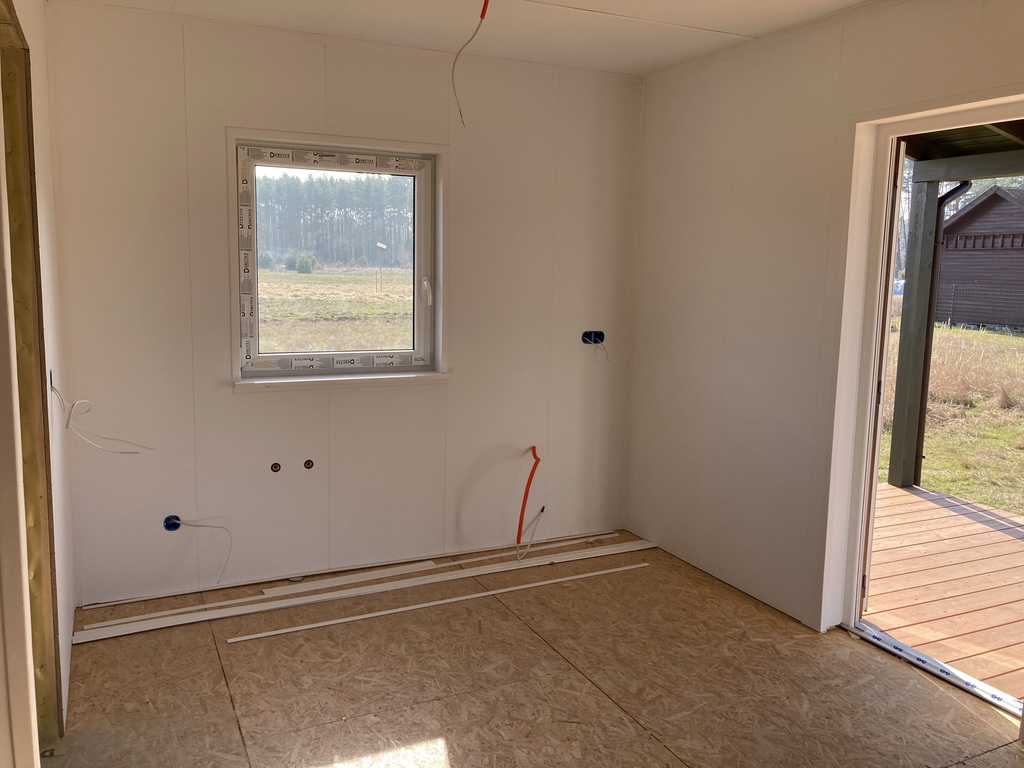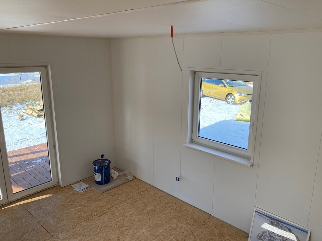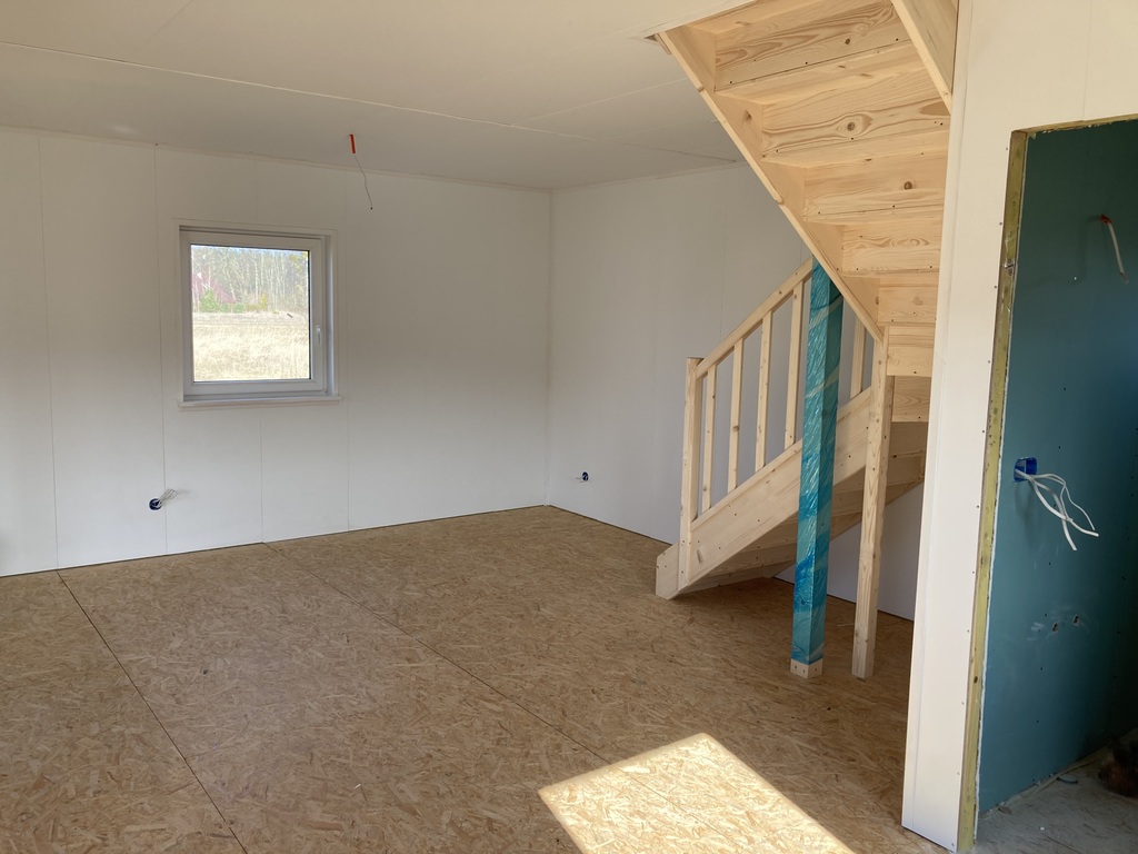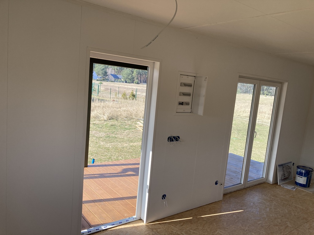 W domku do wykończenia pozostała łazienka i podłogi. Na instalacje składa się zewnętrzna instalacja wodociągowa oraz energetyczna.