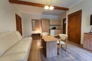 W jego skład wchodzi: 8 apartamentów z łazienkami i aneksami kuchennymi, Każdy apartament posiada balkon lub taras w zależności od położenia na kondygnacji, 2 pokoje gościnne z łazienkami i aneksami kuchennymi umiejscowione na poddaszu oraz mieszkanie właściciela ( sypialnia, salon z aneksem i łazienka z wc. Na terenie znajdują się również 2 domki z łazienkami i aneksem kuchennym.