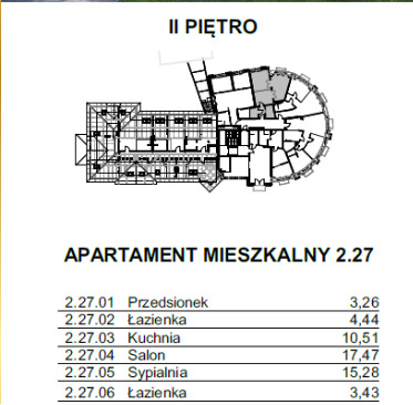 Apartament o łącznej powierzchni 54,39m2 składa się z: