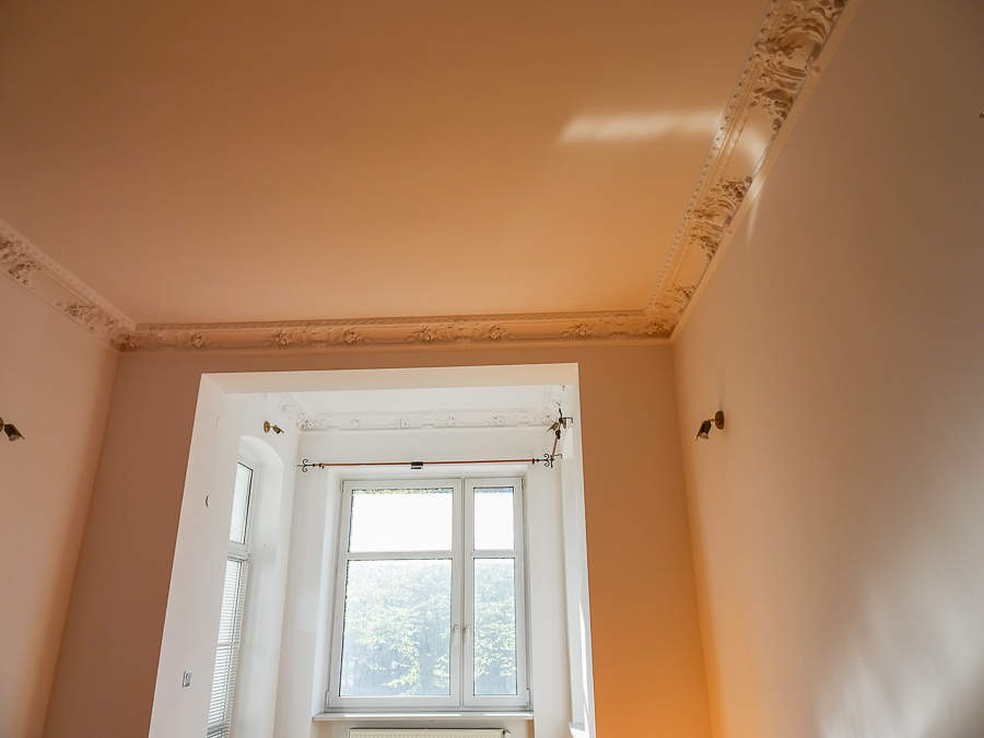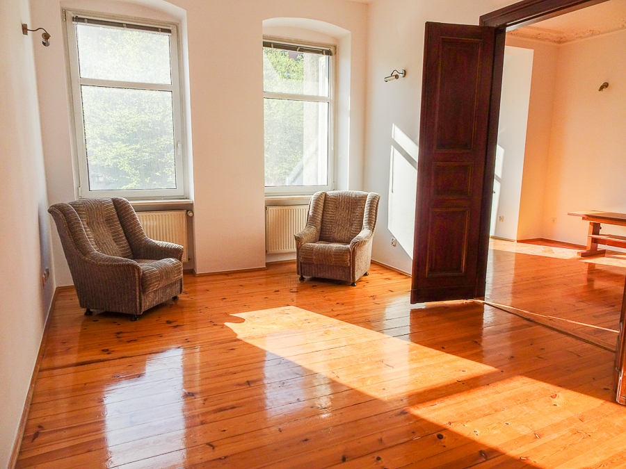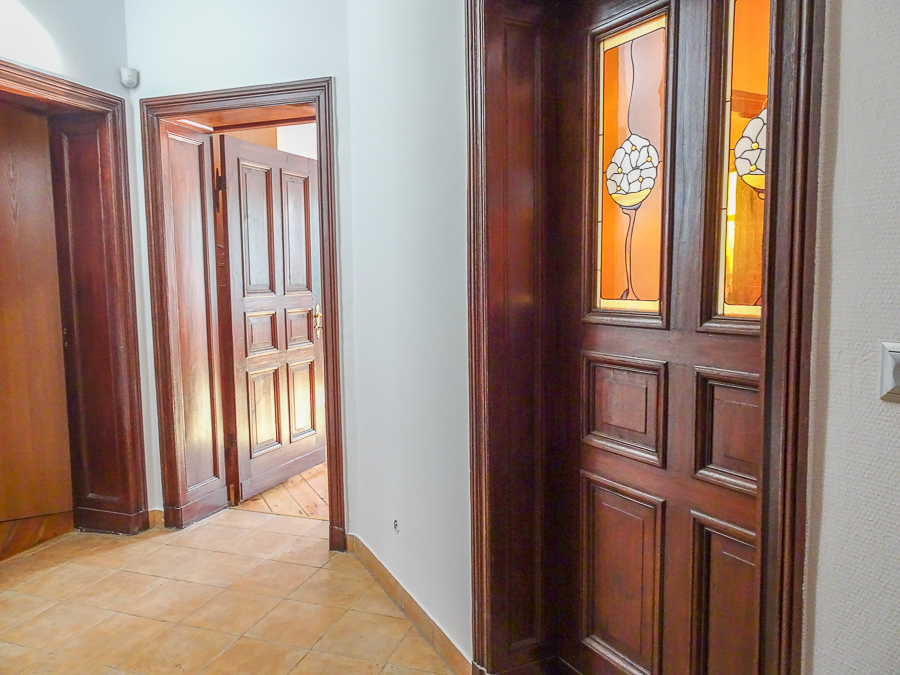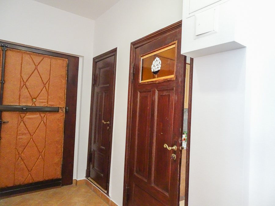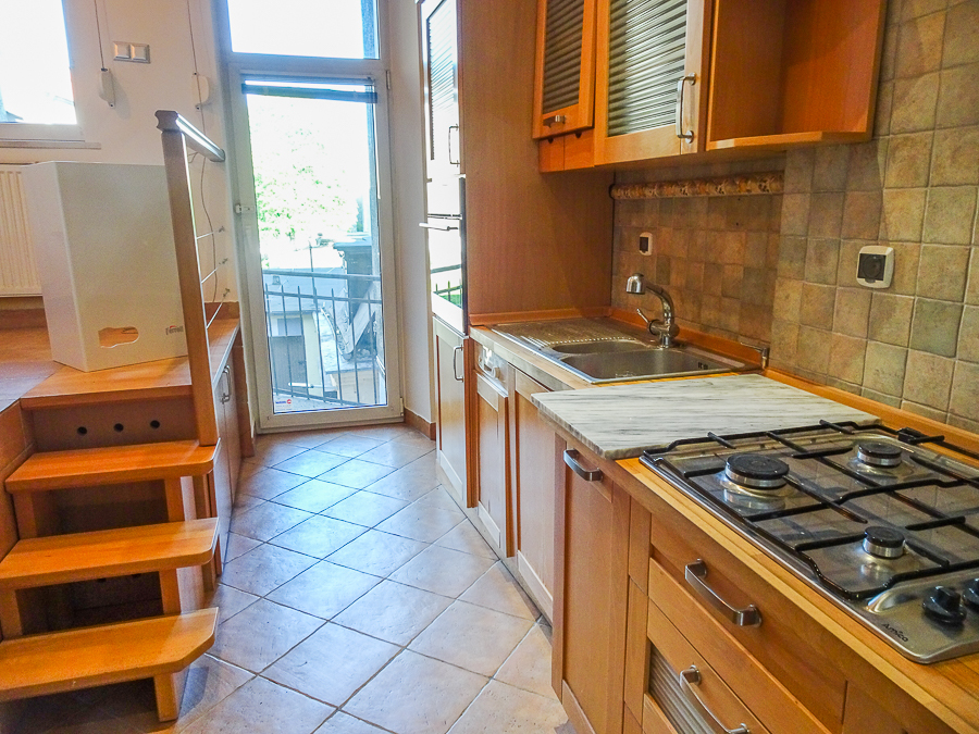Center, in a well-kept tenement house on the first floor, apartment after major renovation with original stucco in one room and preserved door joinery, restored with original door handles and stained glass. Atmospheric and comfortable apartment. Height 3.25 m. Replaced electrical, heating, water and sewage installations, smooth walls, freshly painted. Rooms with an area of 22.02 m2 with a fireplace, 22.7 m2, 22 m2, 8.18 m2, from the third room passage to the bathroom, and from it to the 4th room. From the room exit to the balcony from the street side, from the kitchen exit to the balcony from the side of the well-kept yard. In the kitchen, built-in furniture, kitchen area 9.6 m2. In the bathroom with an area of 5 m2, window, bathtub, washbasin, toilet. Small room at the entrance with an area of 4.96 m2, which can be a wardrobe or study. New windows, PVC with window sills made of marble conglomerate. Anti-burglary entrance door, alarm system. Very interesting for living and for an office.