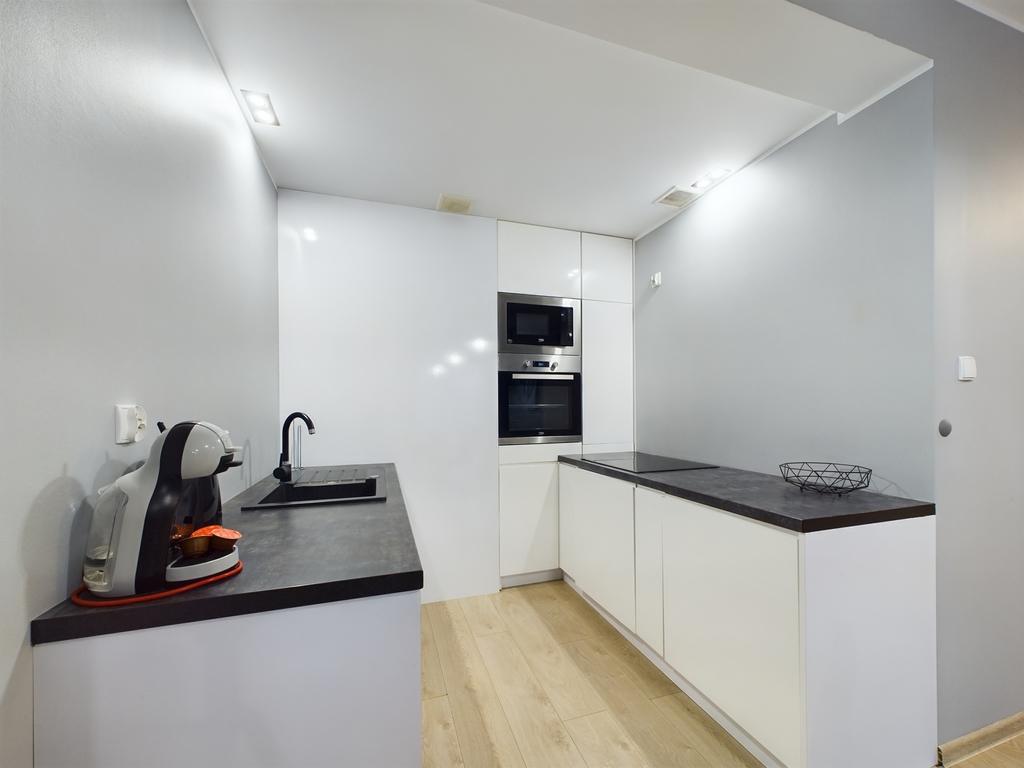 –Salon z aneksem kuchennym: Jasny, przestronny salon z w pełni wyposażonym aneksem kuchennym, stworzonym z myślą o funkcjonalności i nowoczesnym designie.