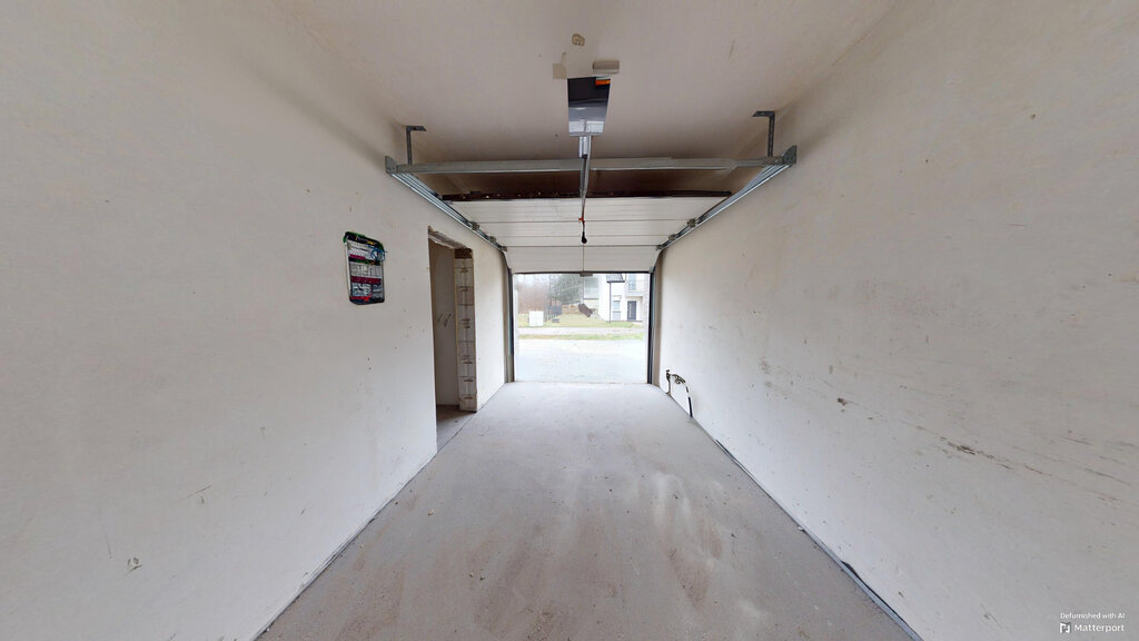 parter: przedpokój, łazienka z wc, pokój z aneksem kuchennym, garaż,