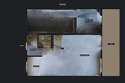 Parter: wiatrołap 4,69m2, otwarta kuchnia 7,74m2, salon z jadalnią 28,07m2, korytarz, toaleta, kotłownia 8,35m2, garaż 17,58m2.