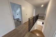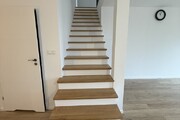 Ściany wygładzone i pomalowane, schody dębowe, balustrady stalowe.