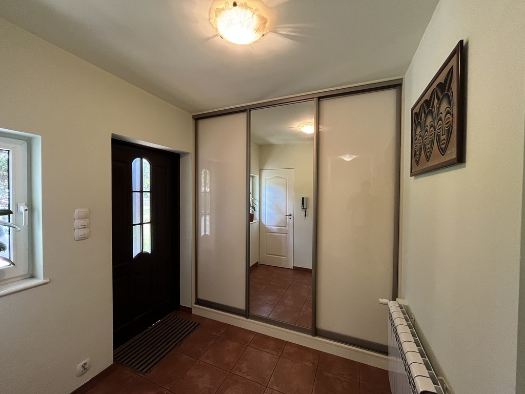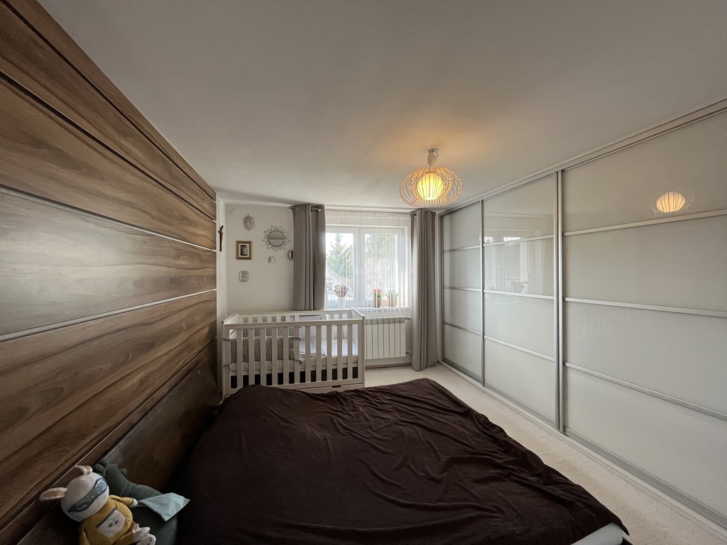 W domu w przedpokojach oraz w jednej sypialni znajdują się duże szafy w zabudowie. W pokojach jak i salonie położone są panele, wszystkie pomieszczenia w jasnych kolorach za wyjątkiem salonu na górze domu gdzie na jednej ze ścian położona jest piękna cegła. Duże łazienki, w których położona jest glazura i terakota.