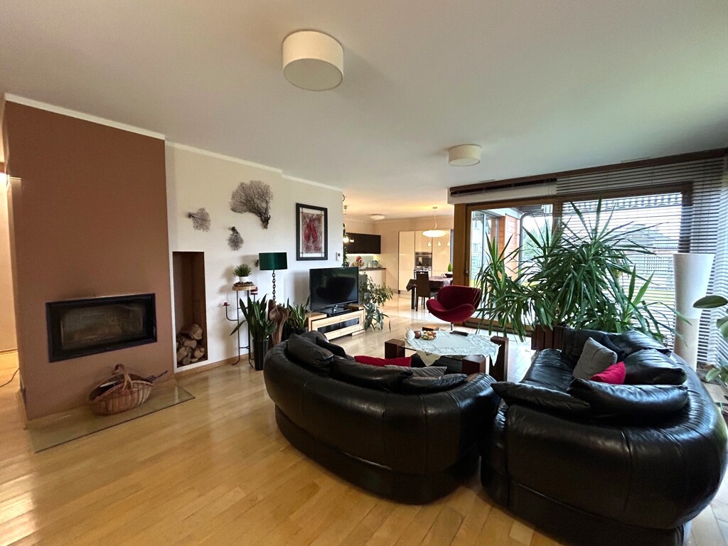 Instalacja energii elektrycznej i gazowej, kanalizacja, woda z sieci miejskiej z wydzieloną wodą ogrodową, rozprowadzana instalacja do centralnego odkurzacza (bez odkurzacza), instalacja grzewcza przygotowana do ewentualnego podłączenia pompy ciepła…, klimatyzacji, instalacja alarmowa, drzwi do garażu i brama wjazdowa na posesję otwierane automatycznie (pilotem).