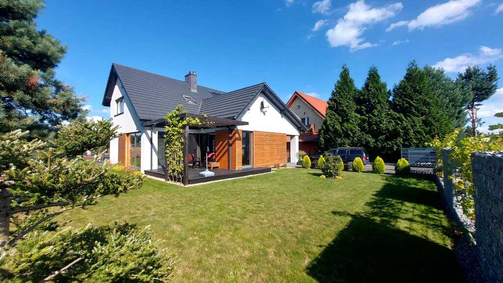 Dom wolnostojący, położony przy jednej z cichych uliczek na spokojnym osiedlu nowych domów jednorodzinnych.