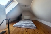 Schody prowadzą na II poziom gdzie znajduje się sypialnia, jest tam sporo przestrzeni pod skosami do wykorzystania np. pod garderobę.