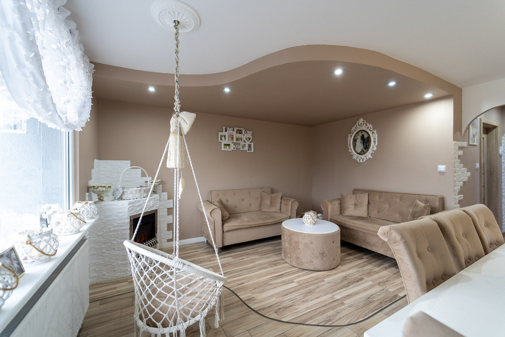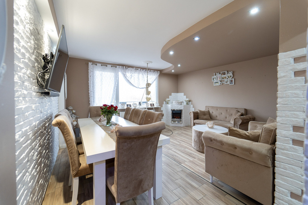 W mieszkaniu jest nowa, miedziana instalacja elektryczna, okna PCV, na podłogach mamy panele i terakotę, na ścianach gładź, ozdobną cegiełkę i tynk strukturalny.  Mieszkanie i woda ogrzewane są przez dwufunkcyjny piec gazowy. W części powstałej z przyłączonej kawalerki jest ogrzewanie podłogowe, w pozostałych pomieszczeniach są grzejniki. W salonie znajduje się  ozdobny kominek elektryczny, który spełnia również funkcję grzewczą.