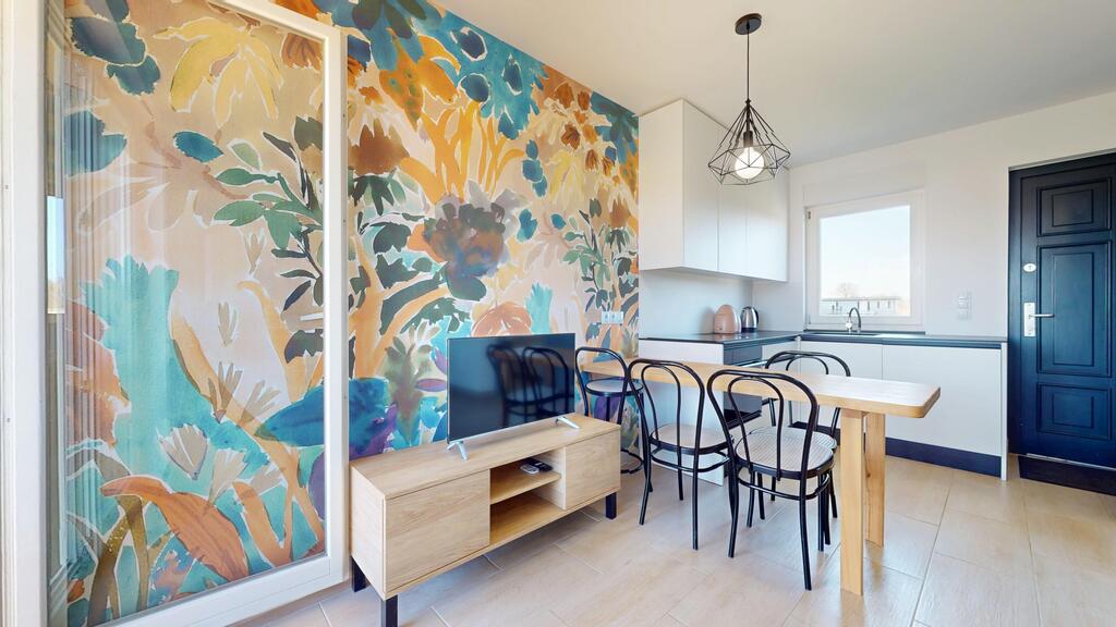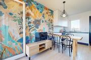 -przestronnego salonu z aneksem kuchennym z wyjściem na słoneczny taras