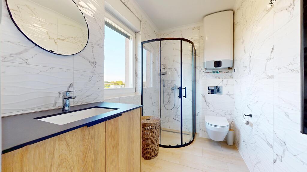 -sporej łazienki z kabiną prysznicową