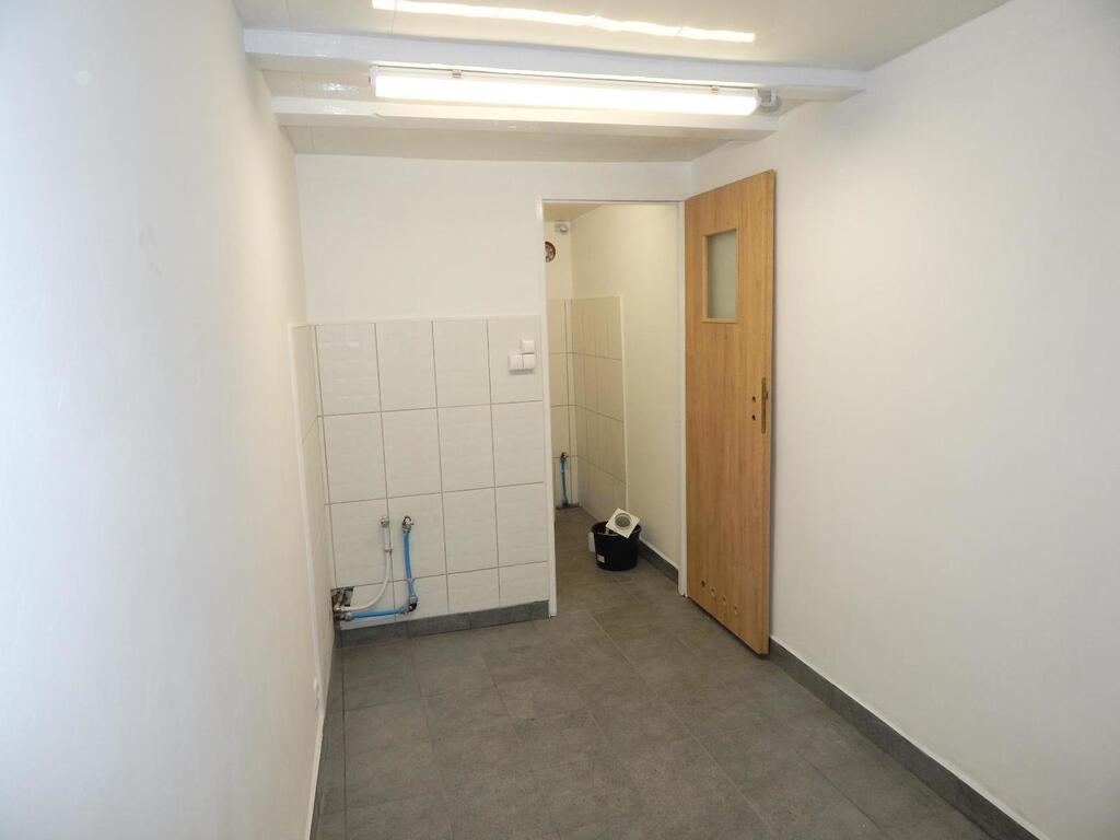 – zaplecze socjalne o powierzchni ok. 15 m2 (jedno pomieszczenie mogące służyć jako biuro albo aneks kuchenny oraz osobne pomieszczenie WC z kabiną prysznicową.