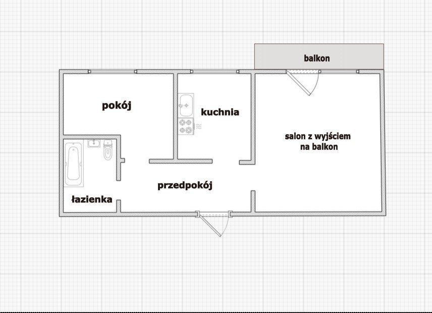 – salon z wyjściem na balkon,