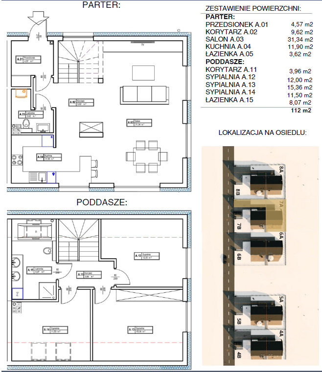 Powierzchnie działek w zależności od wybranego segmentu wynoszą od 316 m2 do 502 m2.