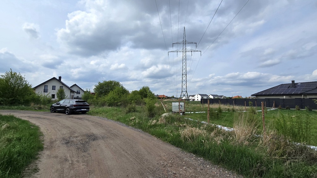 Działka płaska, prostokątna, szer. 91,5m x 28,5 m, w 1/3 szerokości działki przy granicy działki stoi słup linii energetycznej napięcia 110 KV, występuje zatem ograniczenie korzystania z nieruchomości – w poziomie od budynków odległość linii napowietrznych do 110kv – 7,74 m.