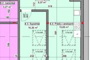 – pokój dzienny połączony z aneksem kuchennym 15,65 (12,12) m2
