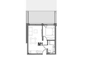 Lokal o powierzchni 32,99 m2, składa się z salonu z aneksem kuchennym, sypialni, łazienki wraz z WC oraz przedpokoju.