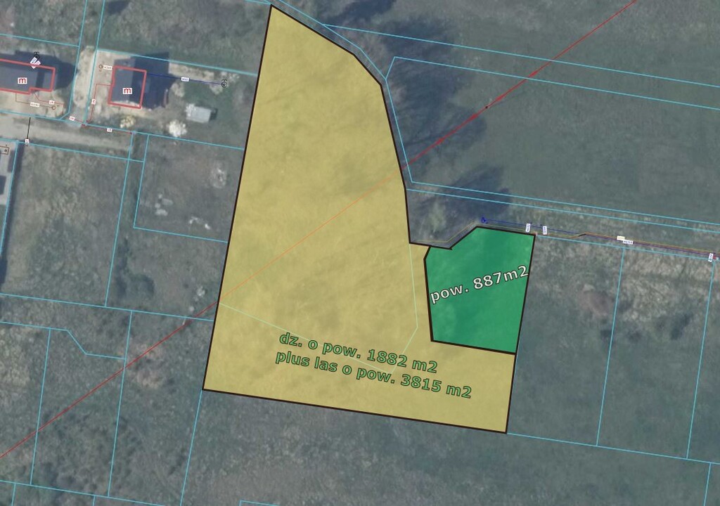 W sprzedaży posiadamy również działkę sąsiadującą pod zabudowę z lasem o łącznej pow. 5697 m2.