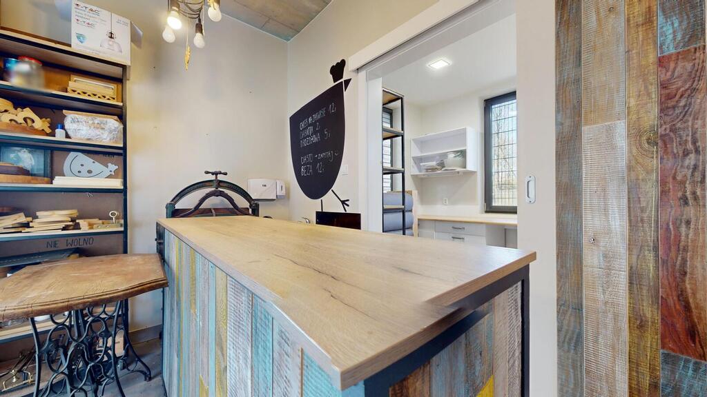 – antresola funkcjonująca jako szatnia oraz zaplecze dla personelu.