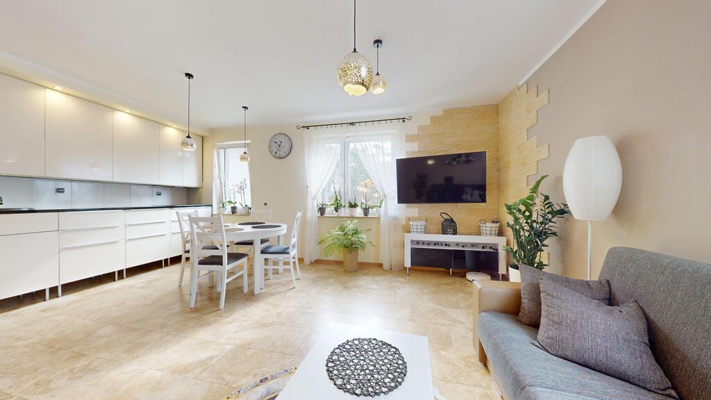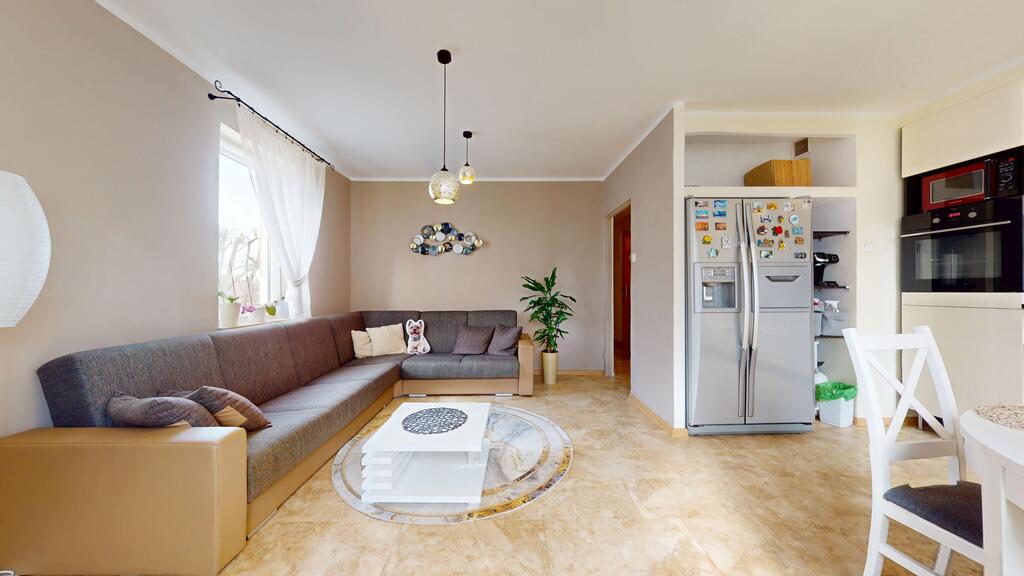 Zbywana nieruchomość ma powierzchnię 66, 70 m2 i składa się z czterech rozkładowych pokoi, przedpokoju, oddzielnej łazienki i wc. Mieszkanie zostało urządzone w nowoczesnym stylu z dbałością o detale. Przestronny salon połączony z kuchnią tworzą otwartą i funkcjonalną przestrzeń tworząc strefę relaksu oraz wypoczynku. Przestrzeń jest bardzo doświetlona, okna w mieszkaniu wychodzą na trzy strony świata – standard mieszkania foto.
