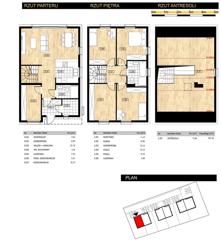 Antresola o pow. użytkowej 7,24m2 a powierzchnia podłogi wynosi 43m2 – idealna na biuro / magazyn / pokój rodziców.