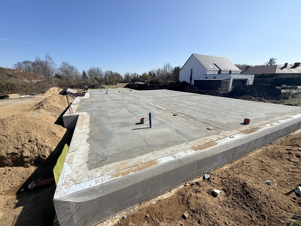 Dom oddzielony od sąsiada podwójną ścianą nośną z dylatacją styropianu pomiędzy ( 18+3+18 )