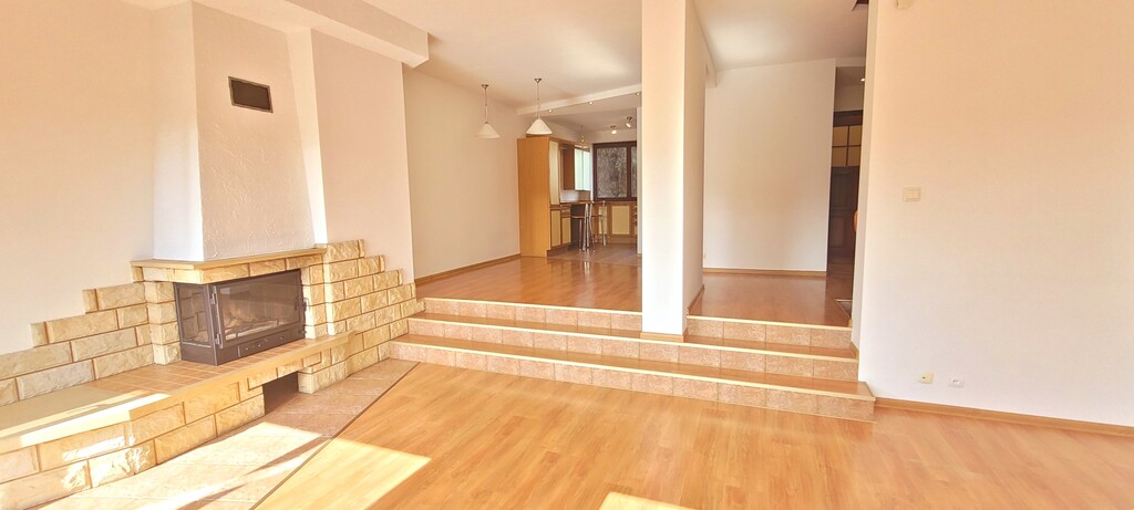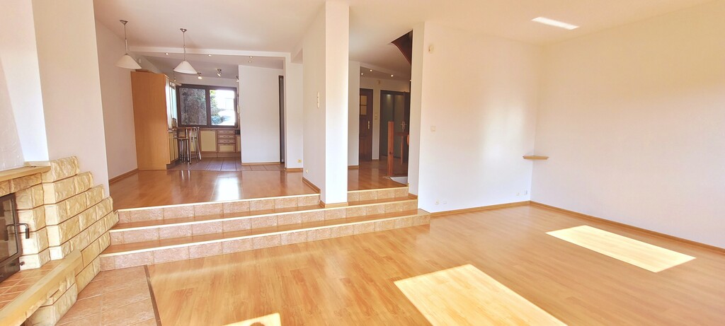 – salon z kominkiem oraz z wyjściem na ogródek,