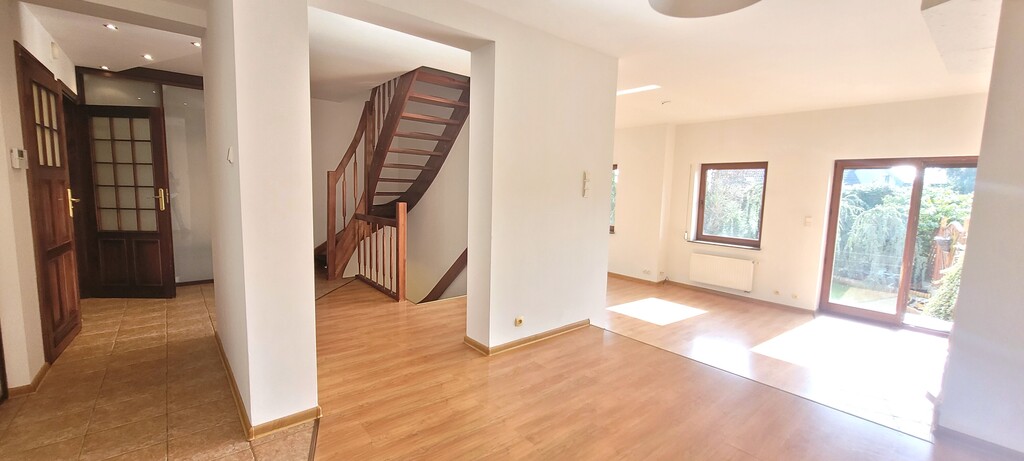 Dom wybudowany w 2001 roku, w technologii tradycyjnej (pustak ceramiczny), utrzymany w bardzo dobrym stanie. Ściany zewnętrzne budynku docieplone (15 cm styropian grafitowy). Okna drewniane. Podłogi: panele, terakota, schody drewniane. Ogrzewanie – piec gazowy z zasobnikiem (200 l) lub kominkowe ( rozprowadzenie ciepłego powietrza na otwartą przestrzeń dzienną na parterze oraz łazienkę i jeden z pokoi na piętrze).