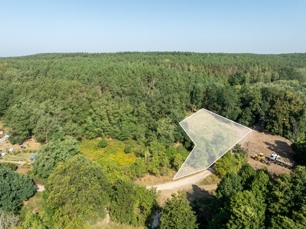Nieruchomość niezabudowana otoczona jest z trzech stron lasem i krzewami. Dojazd drogą asfaltową, następnie drogą utwardzoną szutrową.