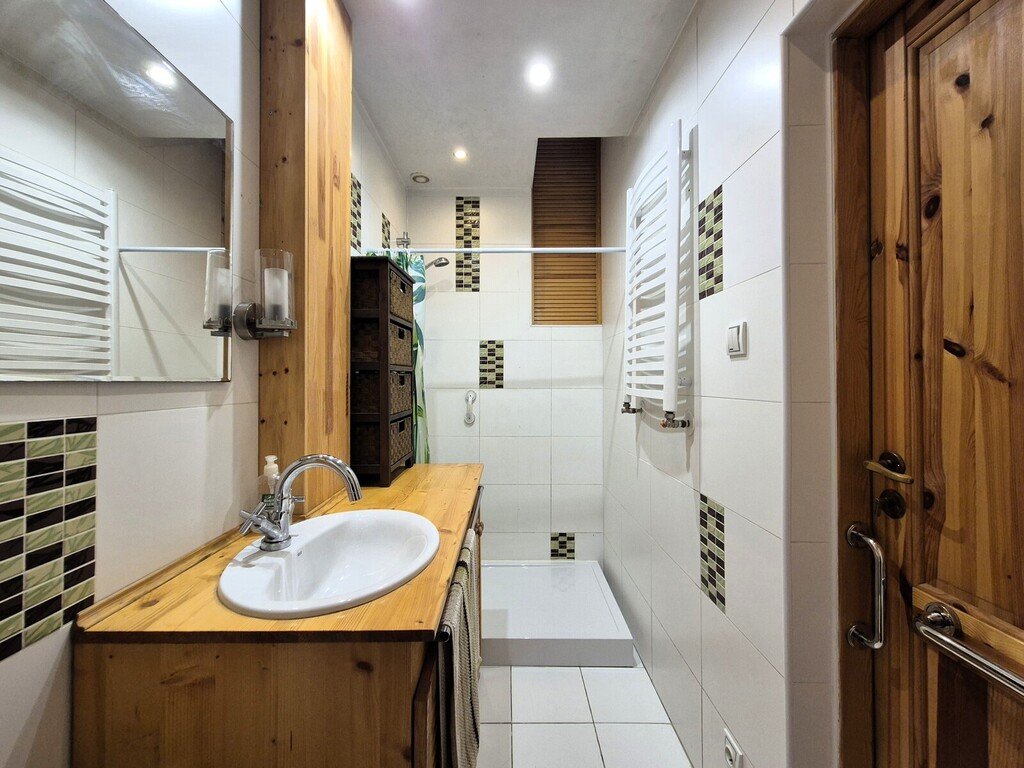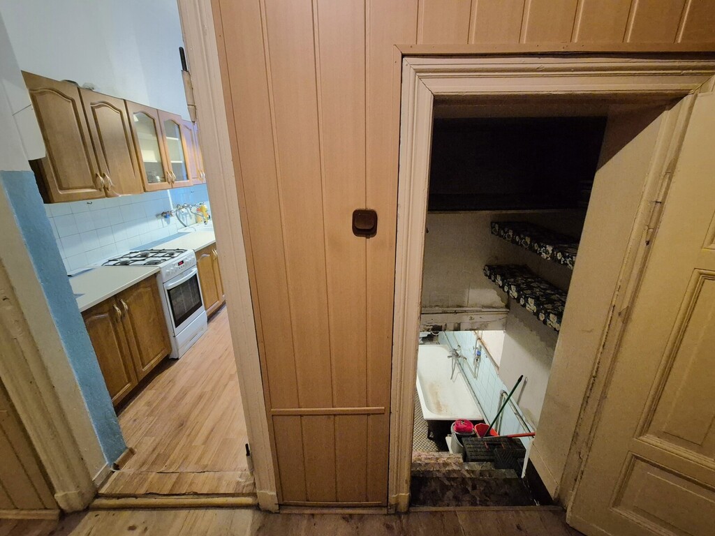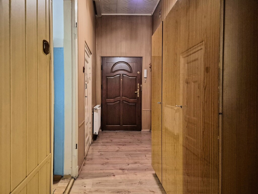 * W przedpokoju znajdują się wejścia do kuchni (z której przechodzi się do łazienki) oraz do dwóch pokojów. Jeden z nich jest pokojem przechodnim z którego wchodzimy do trzeciego pokoju. Obecnie w przedpokoju znajduje się również wejście do skrytki – pomieszczenia, które mogłoby być zaaranżowane na spiżarnię, schowek na rowery lub – w przypadku kancelarii lub biura – pomieszczenie na dokumenty. Możliwość przywrócenia tradycyjnego układu pomieszczeń.