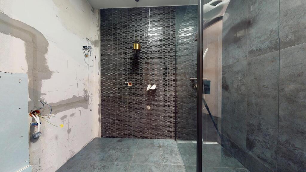 Apartament mieści się na parterze. Został częściowo urządzony i przygotowany pod kolejne prace wykończeniowe.