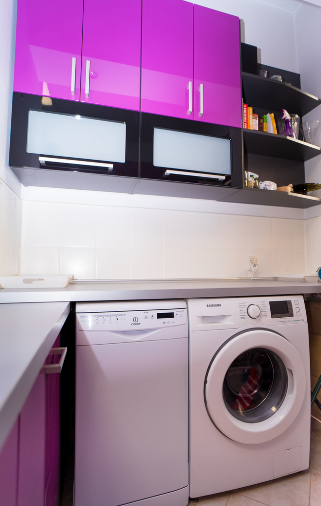 Na podłogach w pokojach i przedpokoju panele, kuchnia i łazienka – terakota.