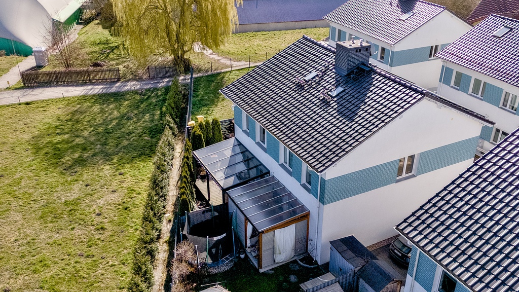 Dom zbudowany w 2017 roku na działce 176m2 jako ostatni bliźniak w ślepej uliczce osiedla  zapewnia spokój od miejskiego hałasu i zgiełku ulicy.