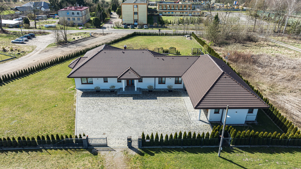 Wyjątkowy dom parterowy o charakterze rezydencjonalnym przystosowany dla dwóch rodzin i do prowadzenia działalności gospodarczej takiej jak: praktyka lekarska, kancelaria prawna, biuro księgowe itp. Miejsce idealne do spokojnego życia jak i do prowadzenia biznesu. Enklawa domów jednorodzinnych, doskonale skomunikowana z trasą S6 Szczecin- Gdańsk. Dom posiada dwa niezależne wejścia i posadowiony jest na dużej, zagospodarowanej działce z okazałym garażem (42 m2) na dwa auta i podjazdem na kolejne pojazdy.
