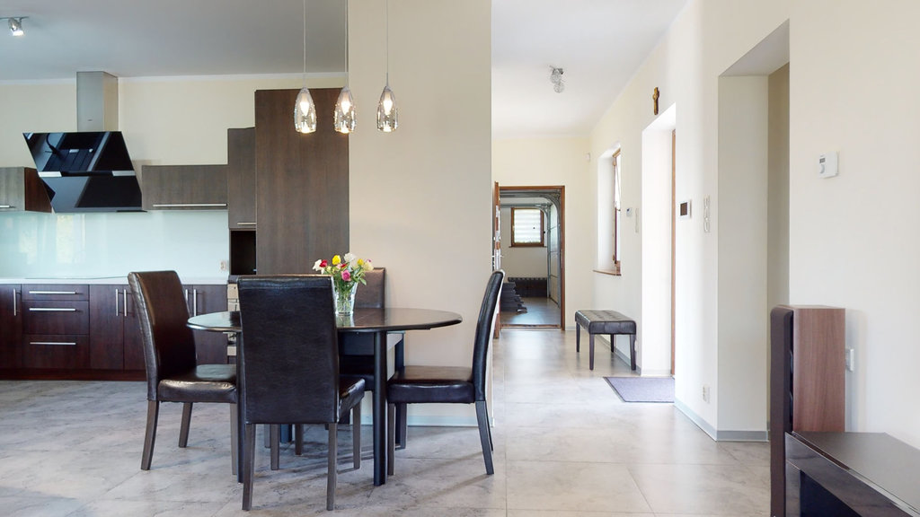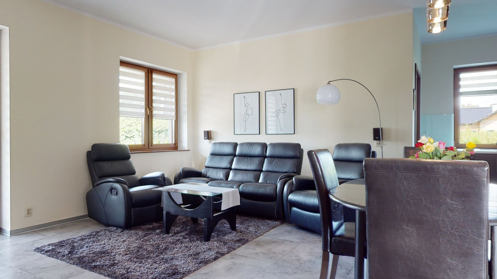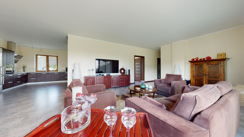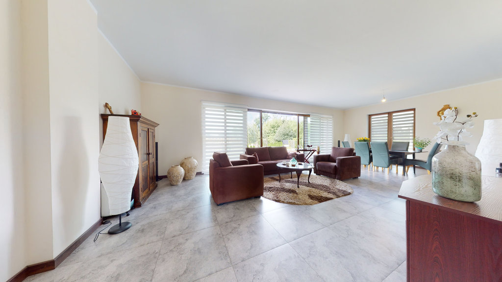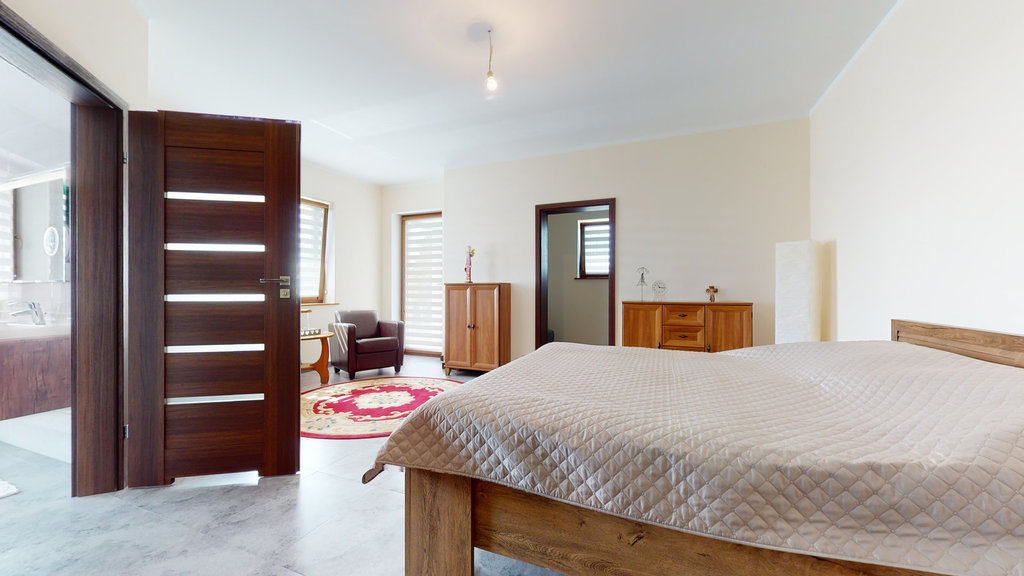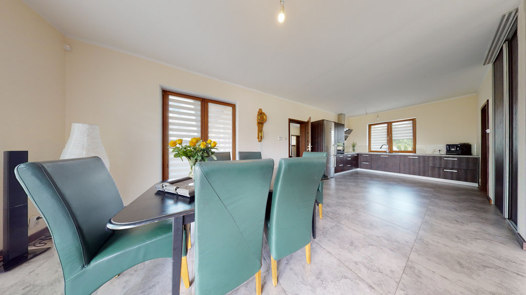 Nieruchomość mogąca służyć za przykład funkcjonalności i perfekcyjnego wykończenia. Pomieszczenia zaaranżowane z ogromną pieczołowitością i dbałością o każdy szczegół przy wykorzystaniu najwyższej jakości materiałów. Zastosowanie wielu udogodnień technologicznych ma na celu komfortowe i ekonomiczne korzystanie z budynku: głębinowa pompa ciepła zasilająca ogrzewanie podłogowe (sterownik do ogrzewania w każdym z pokoi) i podgrzewanie wody, woda ze studni ze stacją uzdatniania wody, przydomowa oczyszczalnia ścieków.